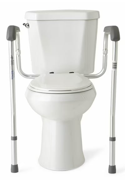 - Perfect for seniors or mobility-impaired individuals, this toilet safety rail is height adjustable from 27.5” to 31.5”